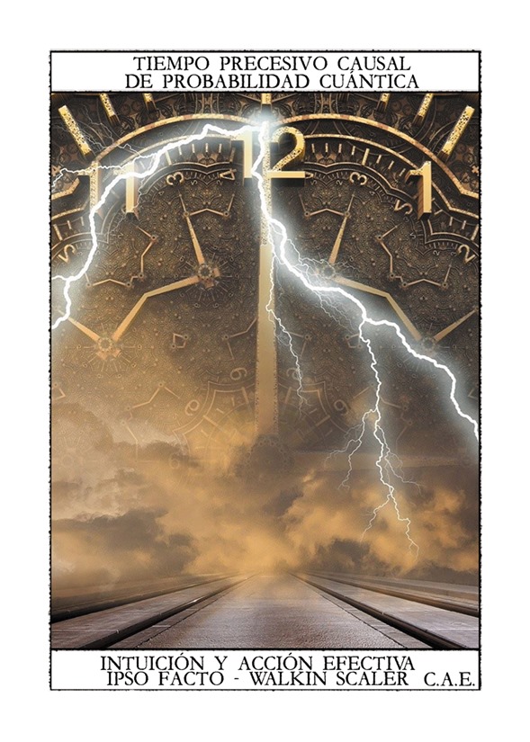 El Tiempo Precesivo es la Línea de tiempo de probabilidad cuántica, es el horizonte de pre-sucesos donde el campo de probabilidad cuántico y el campo dimensional de materia se tocan, y al tocarse se produce ese RELAMPAGO DE LOS 12 SEGUNDOS de la MANIFESTACIÓN, que es el tiempo cuántico de Precesión, o sea el tiempo vivo de lo que está por suceder y por tanto está aún bajo nuestro control, y ese TIEMPO DE PRE-SUCESIÓN, al que también podemos llamar el “Ahora” (aunque este término es muy ambiguo y ya está muy contaminado) es la línea de Tiempo Precesivo, que está entre el futuro inmediato y el pasado inmediato que llamamos “presente”.